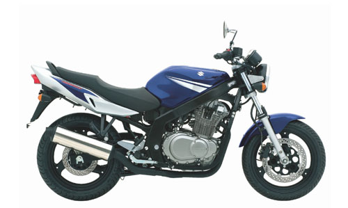 A GS500E pode ser encontrada nas cores preta e azul escuro. As motocicletas Suzuki possuem um ano de